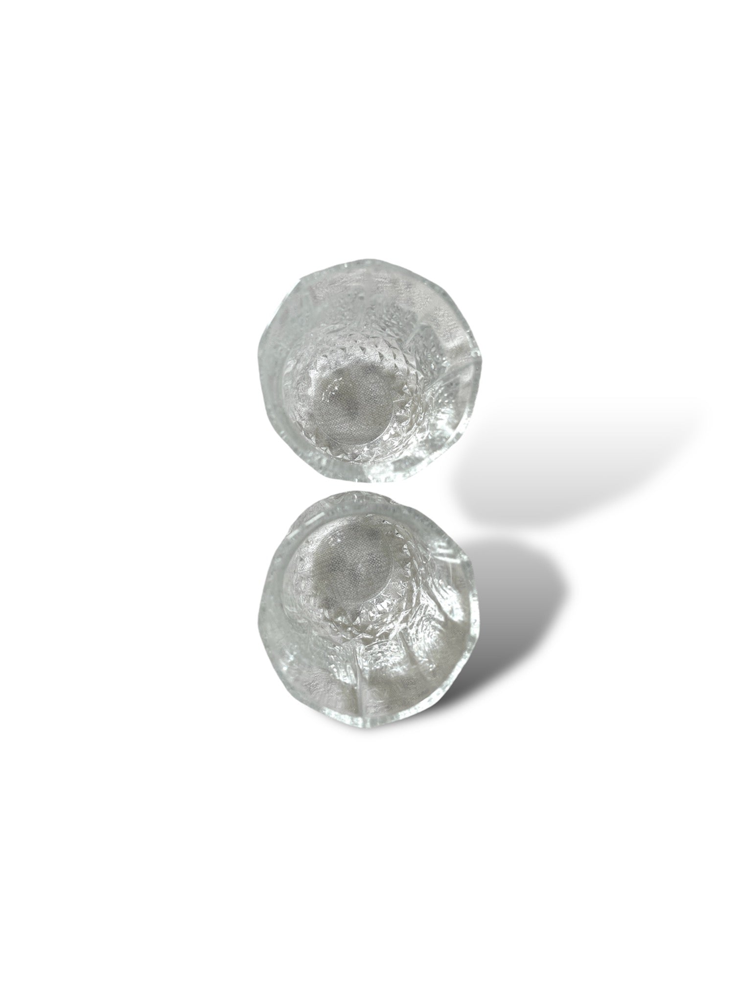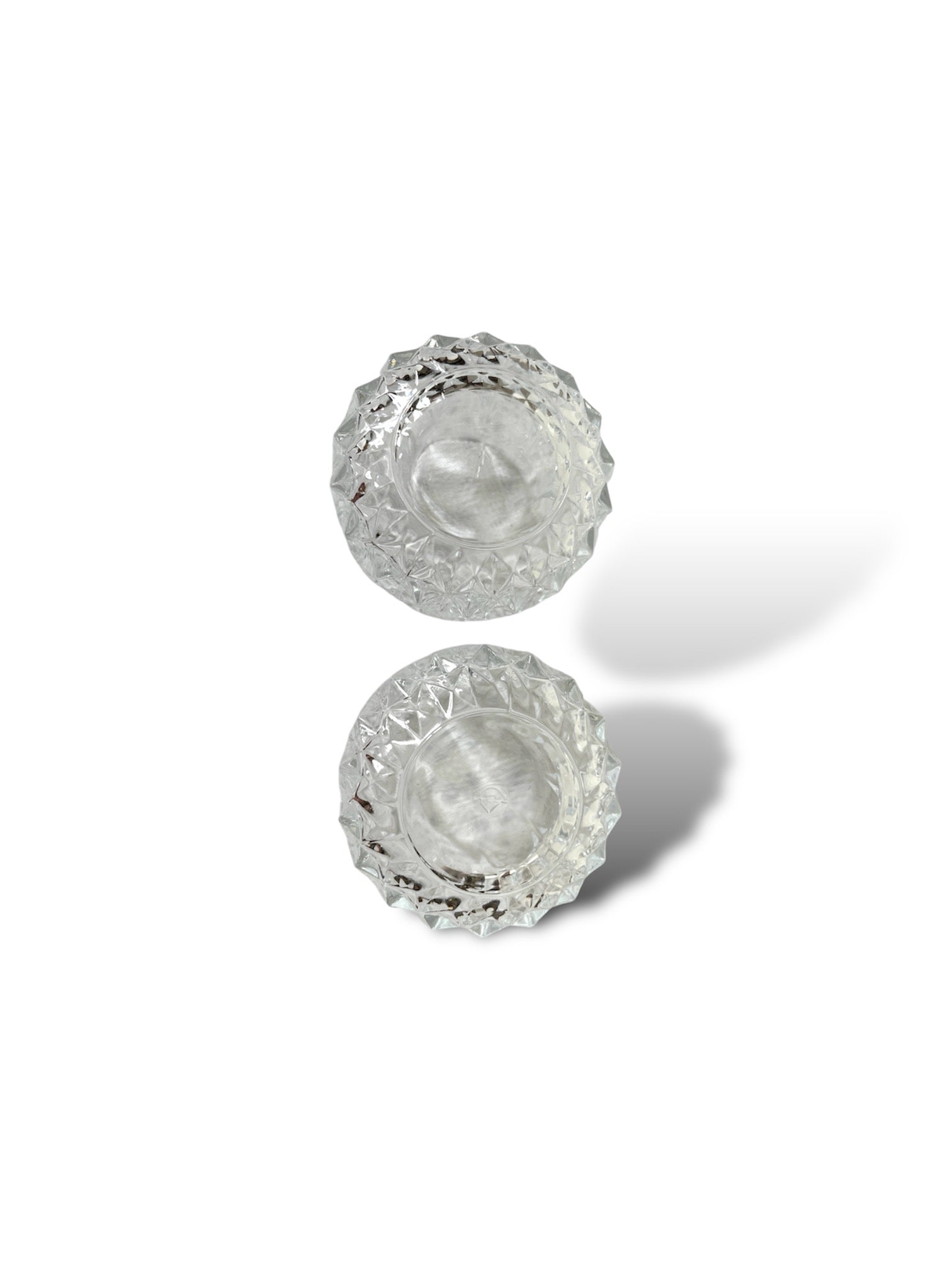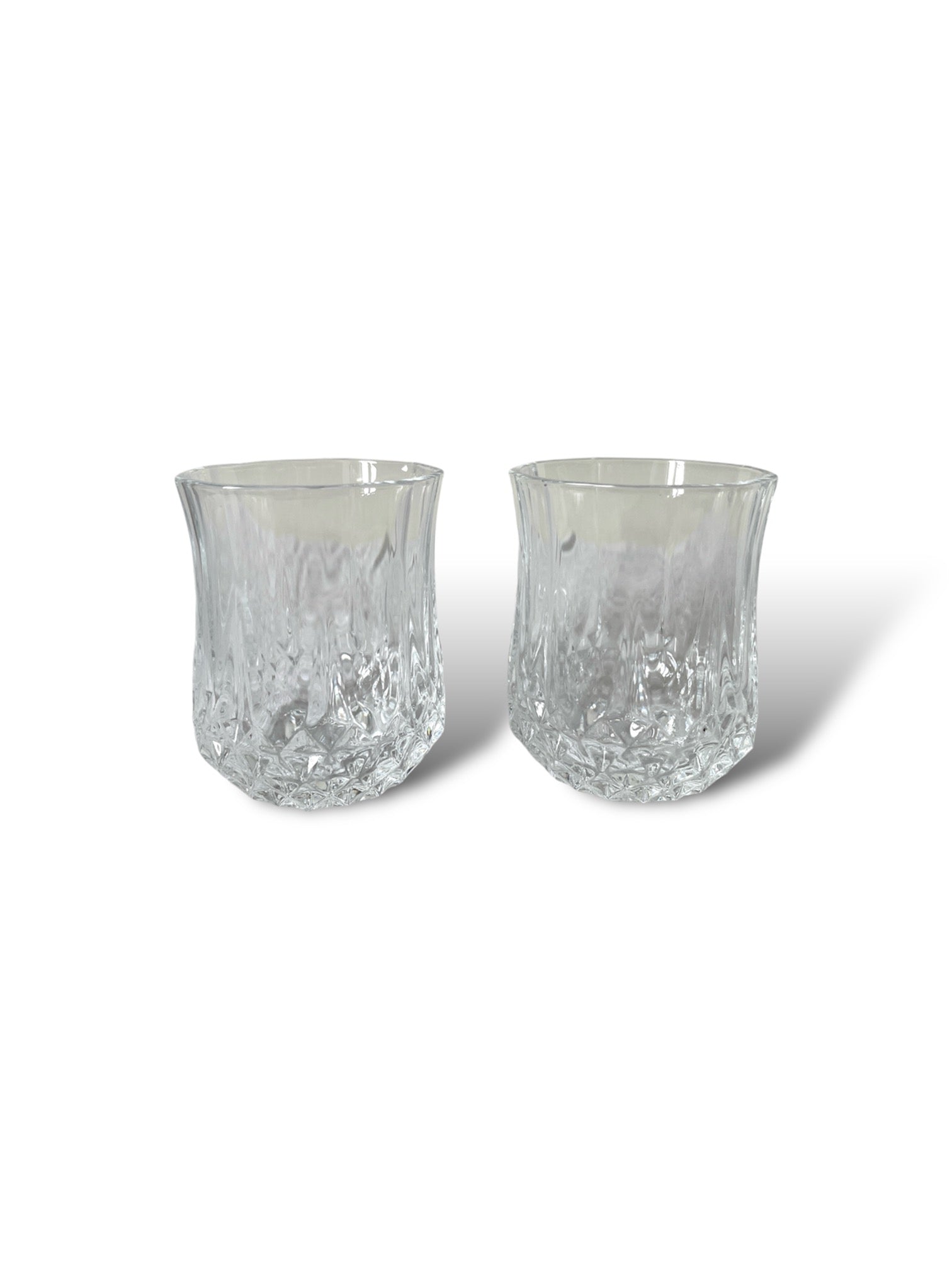 Duo de verres à liqueur en cristal taillé orné d'un motif à facettes.