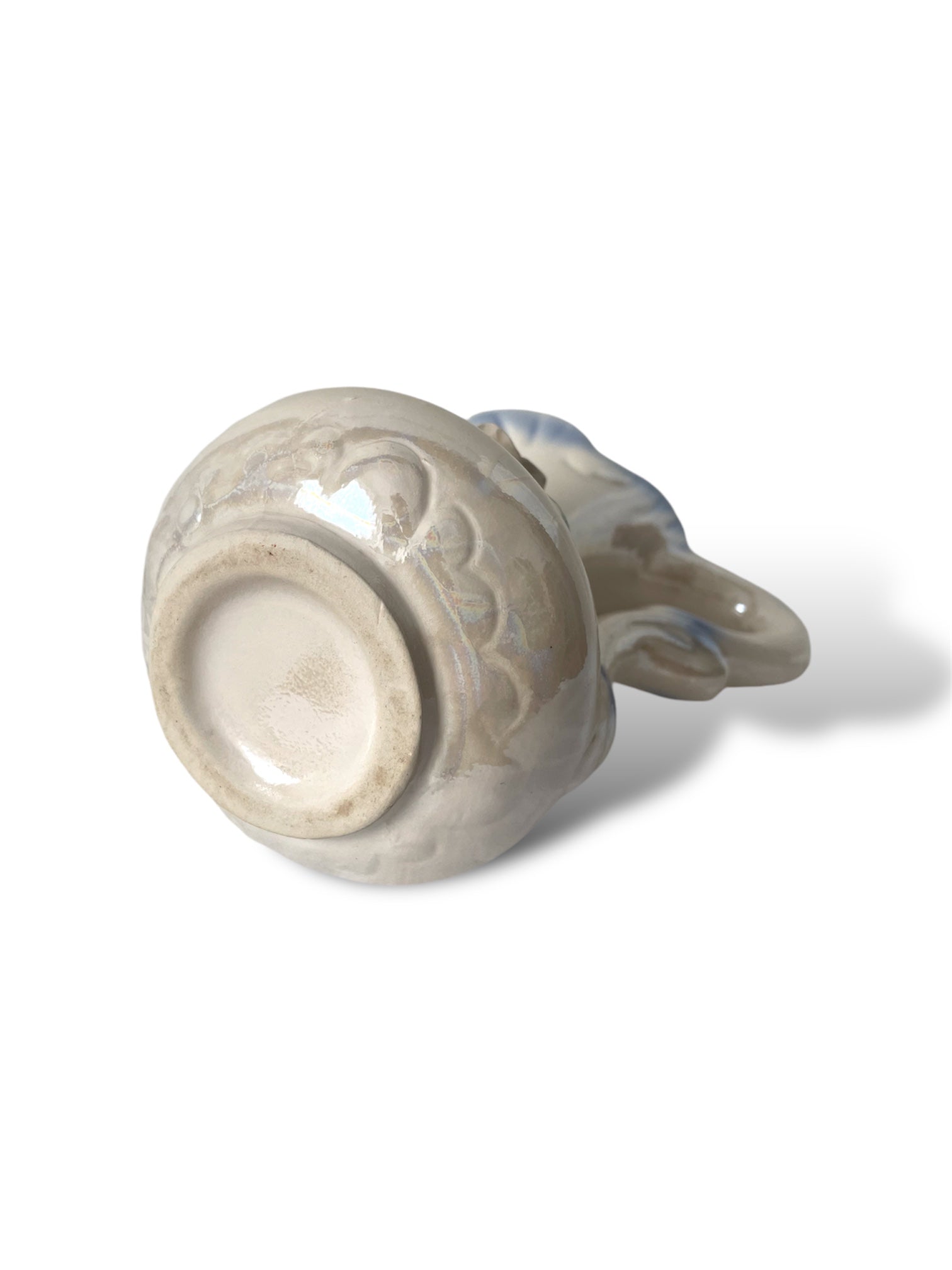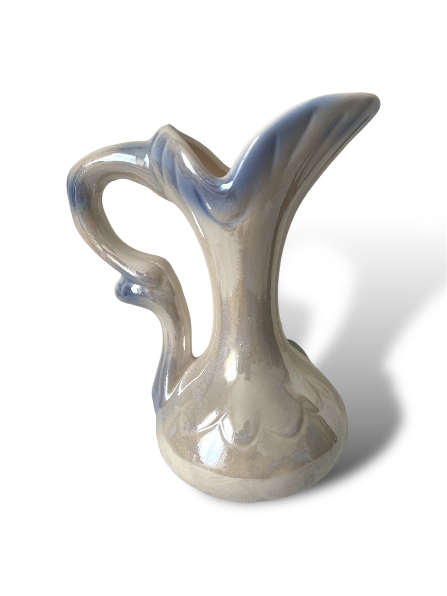 Apportez une touche kitch et rétro à vos tea time avec ce petit pichet vintage en porcelaine irisée des années 50. Une rose en relief et des teintes bleu, rose et vert pastel sur fond crème.