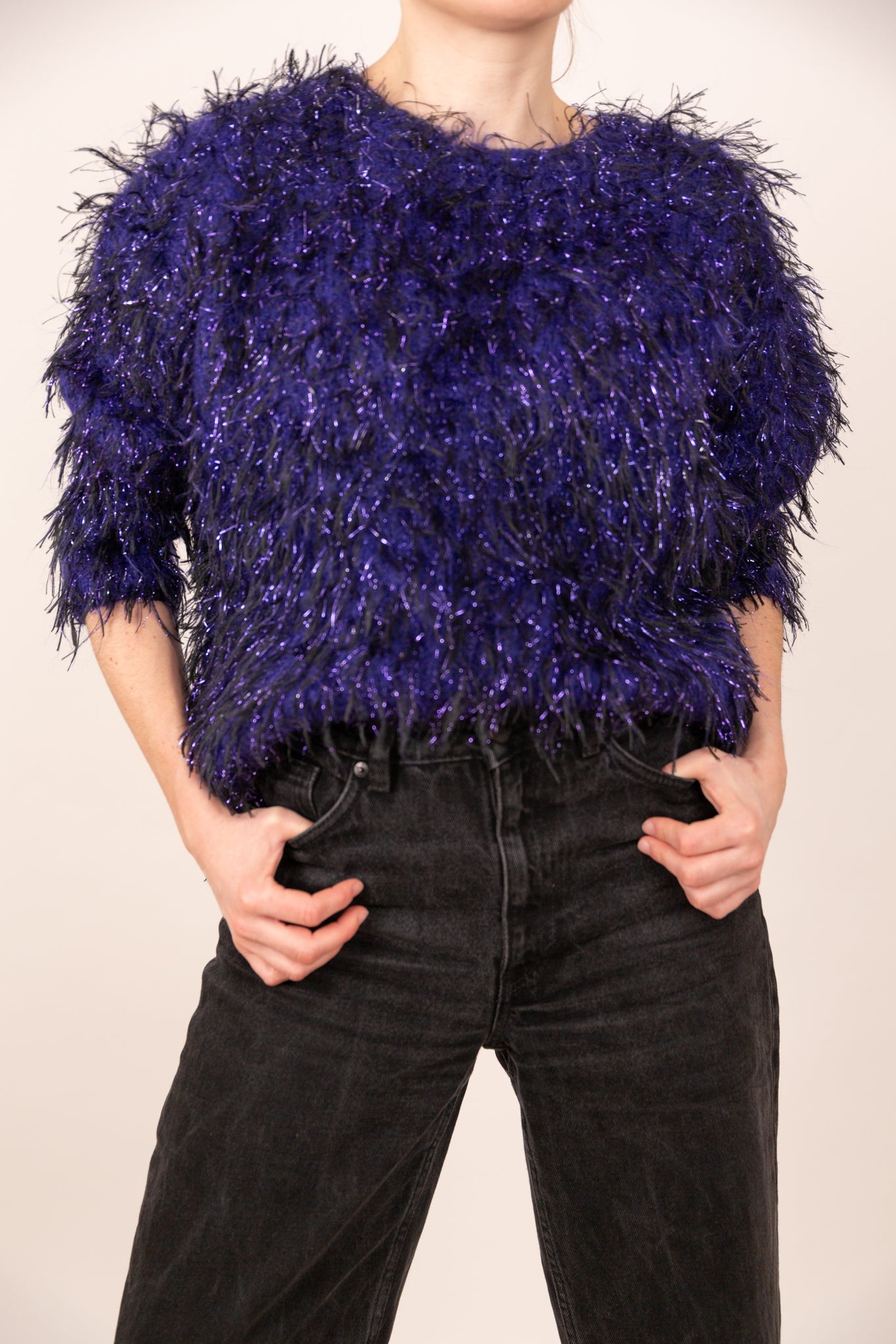 Pull violet duveteux et brillant 38