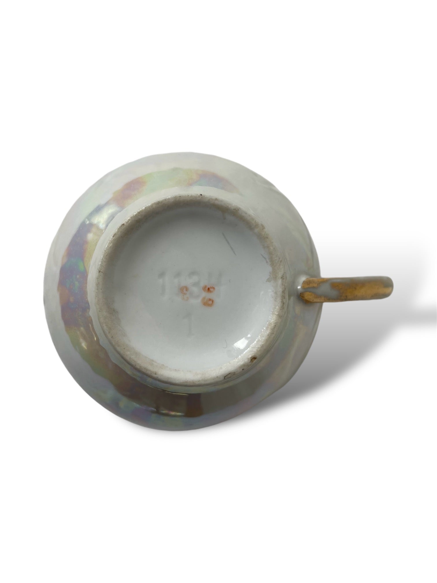 En porcelaine fine blanc irisé avec de jolies dorures.